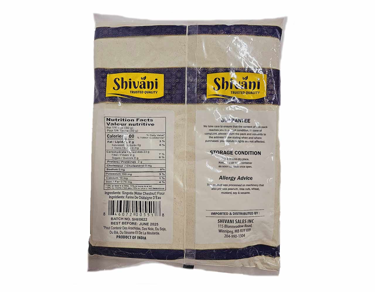 Shivani Singoda Flour is a nutritious, gluten-free flour made from water chestnuts (Singoda). Rich in fiber and essential nutrients, it is commonly used in Indian cuisine for fasting recipes, offering a light, healthy alternative to regular flours.