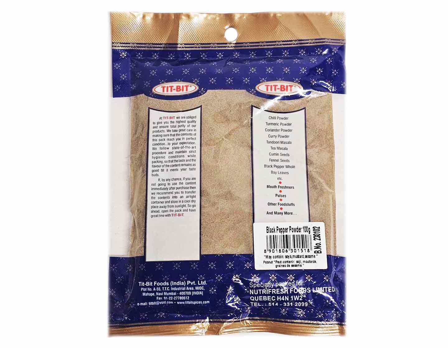 Tit-Bit Black Pepper Powder is a versatile and essential spice that brings a burst of flavor to various dishes. Crafted from finely ground black peppercorns, it offers a distinctive aroma and bold, peppery taste, elevating the overall dining experience.
