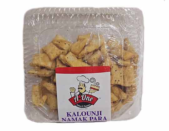 A-One Kalonji Namak Para is a crispy, savory snack made from refined flour and flavored with black cumin (kalonji) and salt. Perfect for tea-time, its crunchy texture and mild spices make it a delightful treat for all ages.