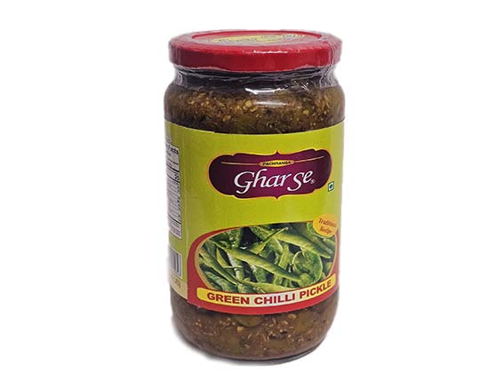GharSe Green Chilli Pickle is a tangy and spicy homemade delight, made with fresh green chilies, mustard oil, and traditional Indian spices. Perfect as a side with meals, it adds a fiery kick and authentic flavor to your dishes.