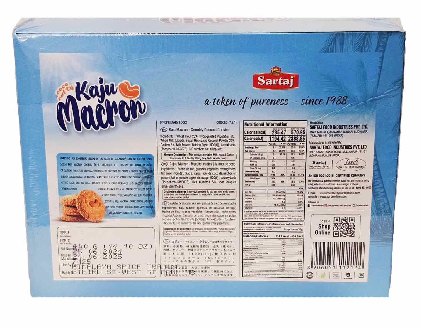 If you're craving something unique, try Sartaj Kaju Macaron Cookies. These exquisite treats blend the rich nuttiness of cashews with the sweet, tropical taste of coconut for a luxurious and refreshing flavor experience.