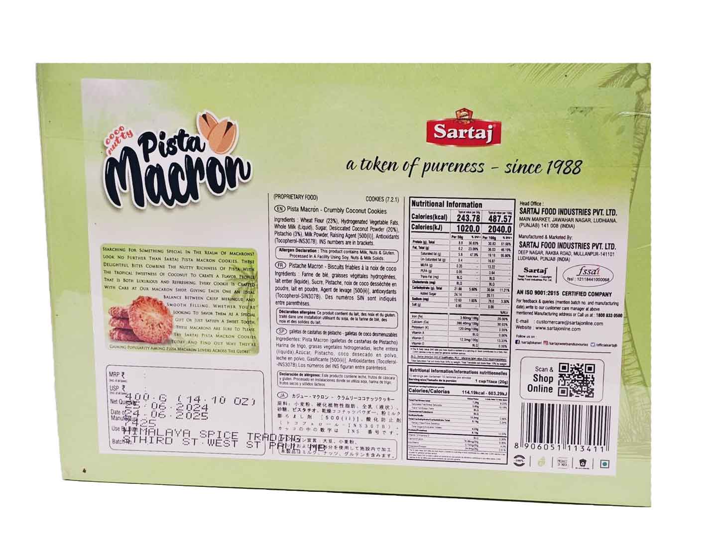 The Pistamikas encased within the macaron offer a rich, earthy flavor, complemented by a generous topping of shredded pistachios. This delightful combination creates the perfect macaron, blending textures and flavors into a truly indulgent treat.
