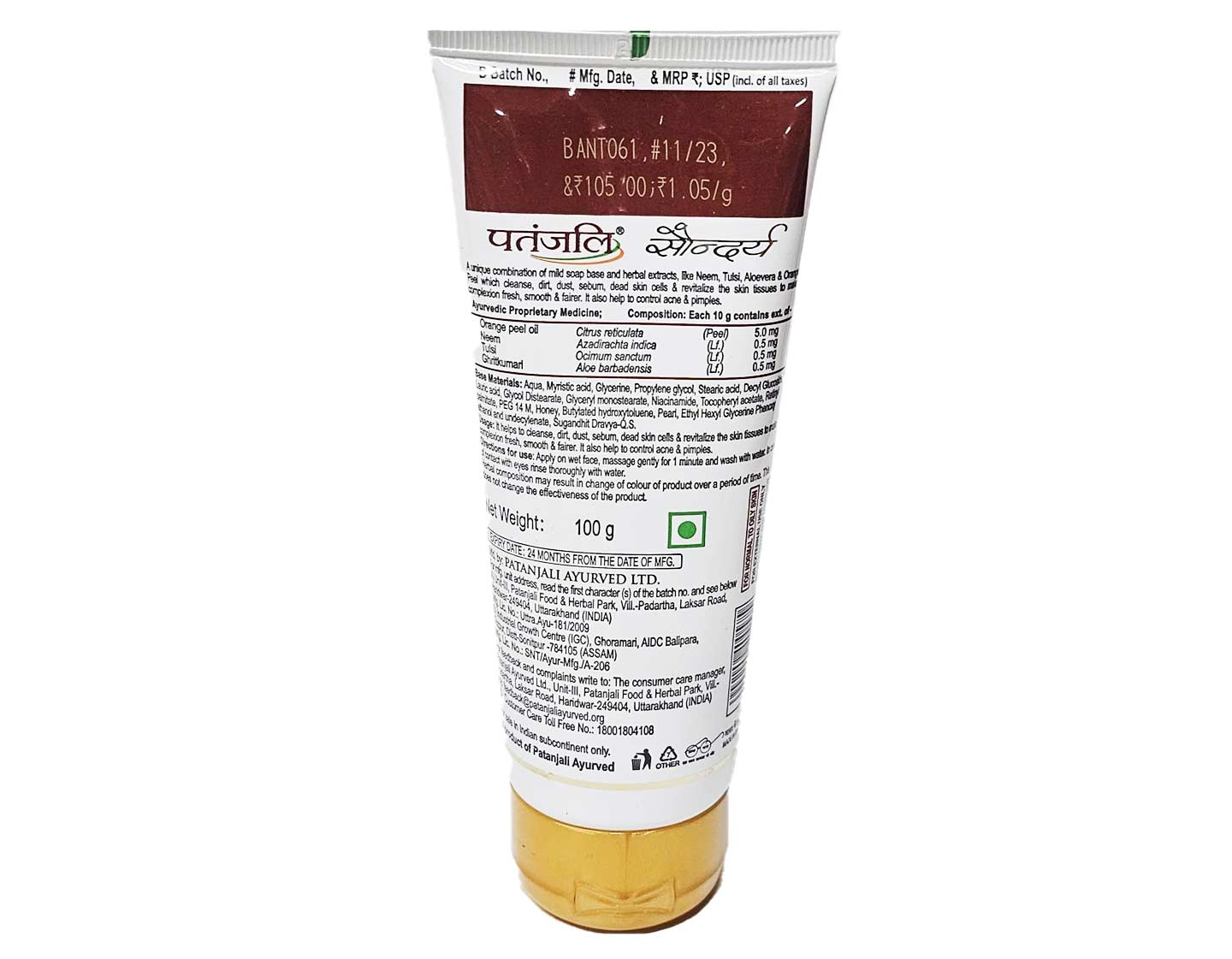 Patanjali Saundarya face wash is a herbal solution for daily skincare, deeply cleansing and purifying the skin. Enriched with neem, tulsi, aloe vera, and orange peel, it removes impurities and excess oil while maintaining natural moisture, suitable for all skin types.