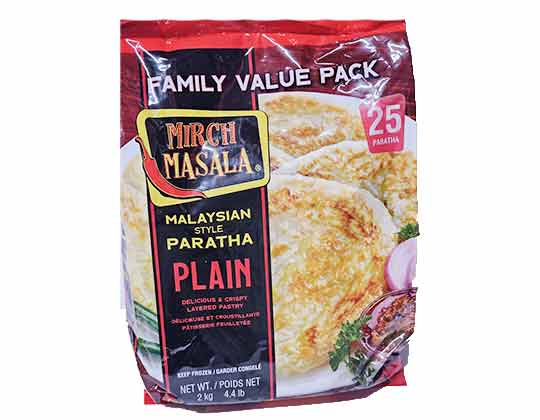 Plain parathas are made by kneading whole wheat flour with salt, oil, and water. The dough is rolled out into layers and cooked on a hot griddle or tawa with ghee or oil until light golden brown spots form on both sides.
