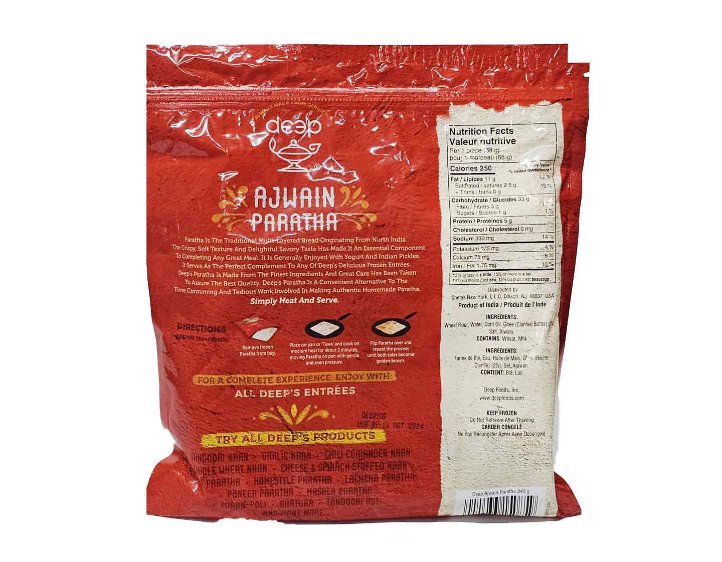 These flaky parathas are made from unleavened whole wheat dough, seasoned with carom seeds (ajwain). They provide a nutritious balance of proteins, carbohydrates, fiber, and amino acids, promoting optimal nutrient absorption from the wheat.
