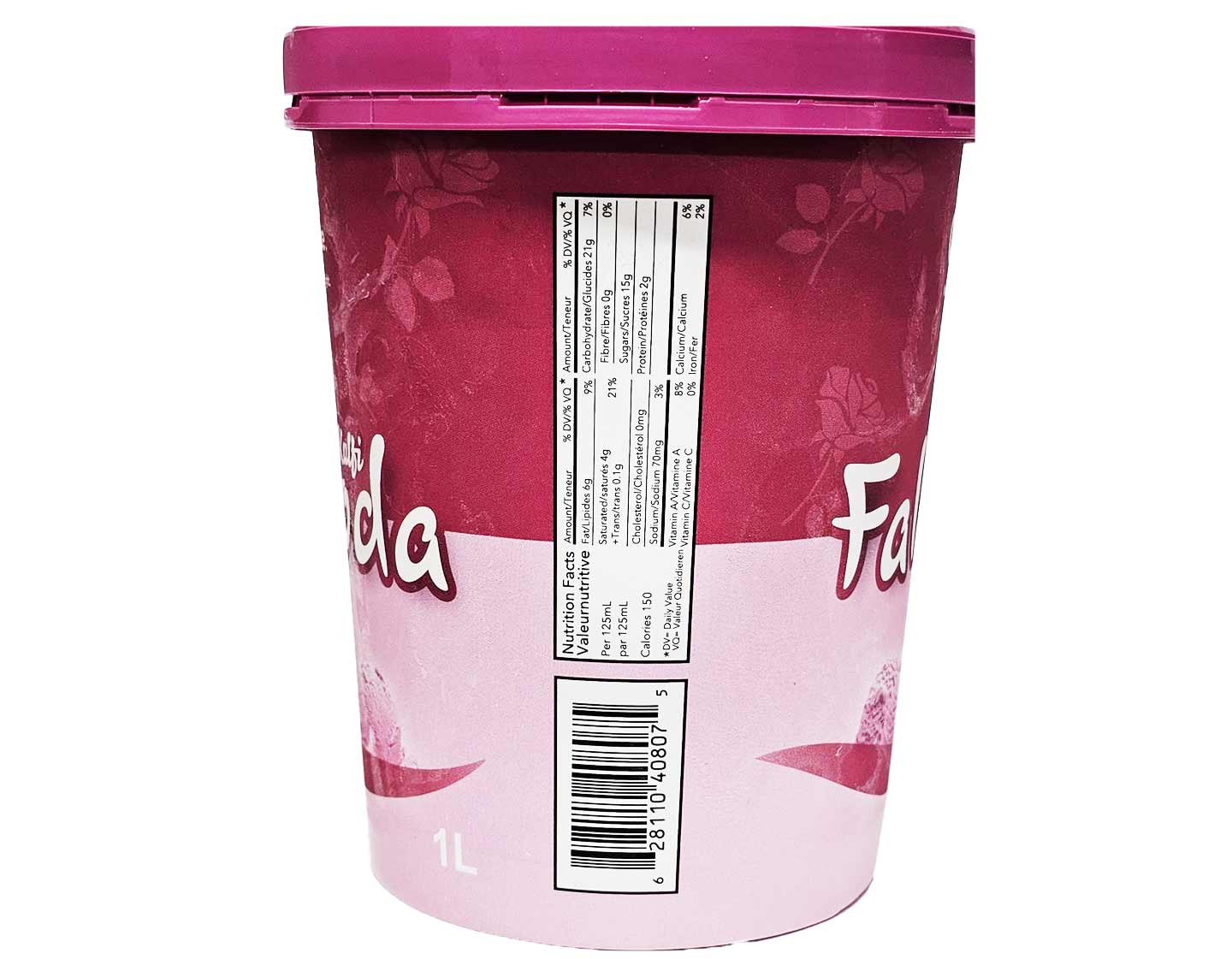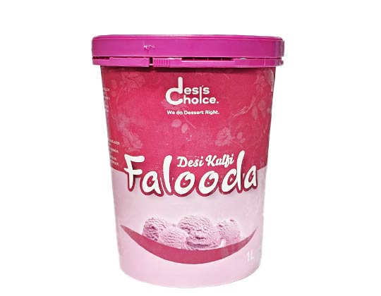 Desi Choice Falooda Kulfi Tub is a 1-liter container of Indian-style ice cream featuring the rich, traditional flavors of falooda. This classic South Asian dessert blends vermicelli noodles, nuts, rose water syrup, and occasionally fruits.