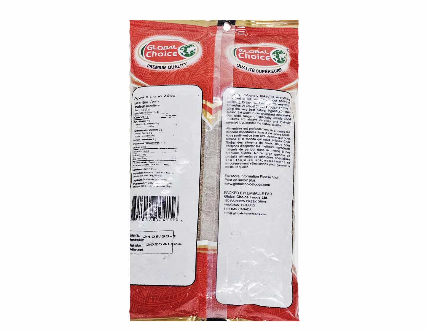 Global Choice Ajwain Seeds are a premium spice known for their strong flavor and health benefits. Also called carom seeds, they add a pungent taste to a variety of dishes, enhancing both flavor and wellness.