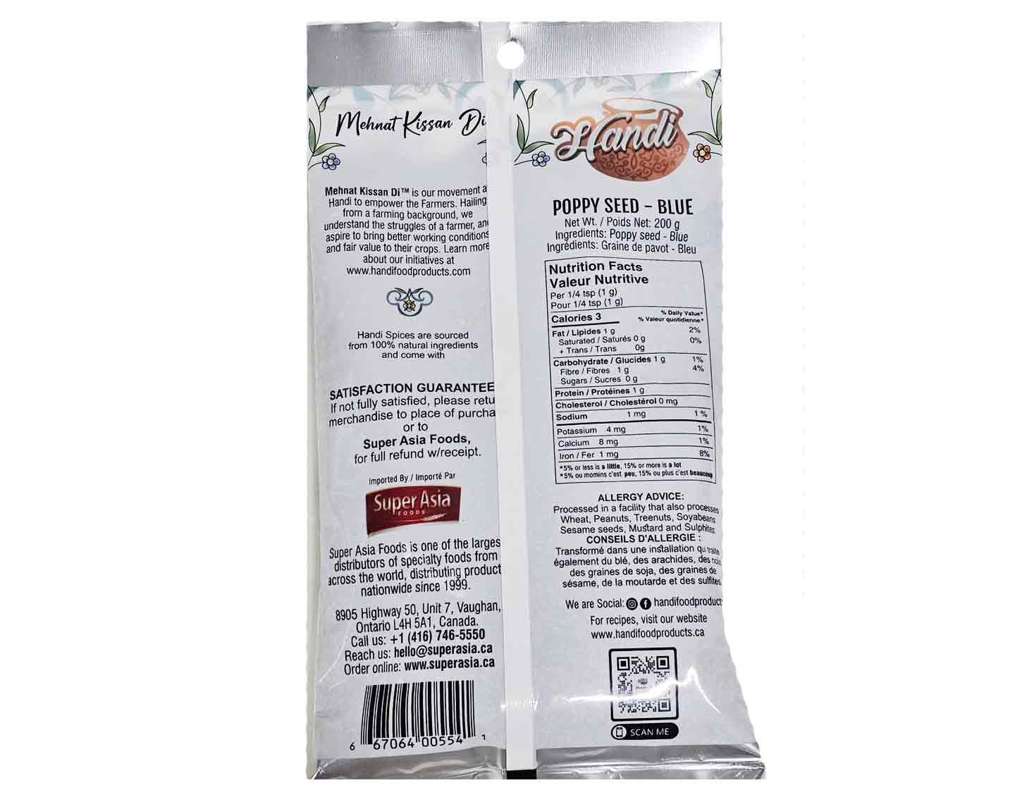 Handi Poppy Seed Blue offers premium-quality blue poppy seeds with a subtle, nutty flavor and crunchy texture, perfect for various dishes. Rich in nutrients like calcium and magnesium, they're a flavorful and healthy addition to any recipe.