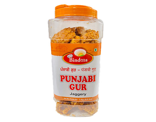 Bindaas Punjabi Gur (3kg) is pure, natural jaggery made from high-quality sugarcane. Rich in minerals and antioxidants, it’s a healthy sweetener ideal for tea, desserts, and traditional Punjabi recipes.
