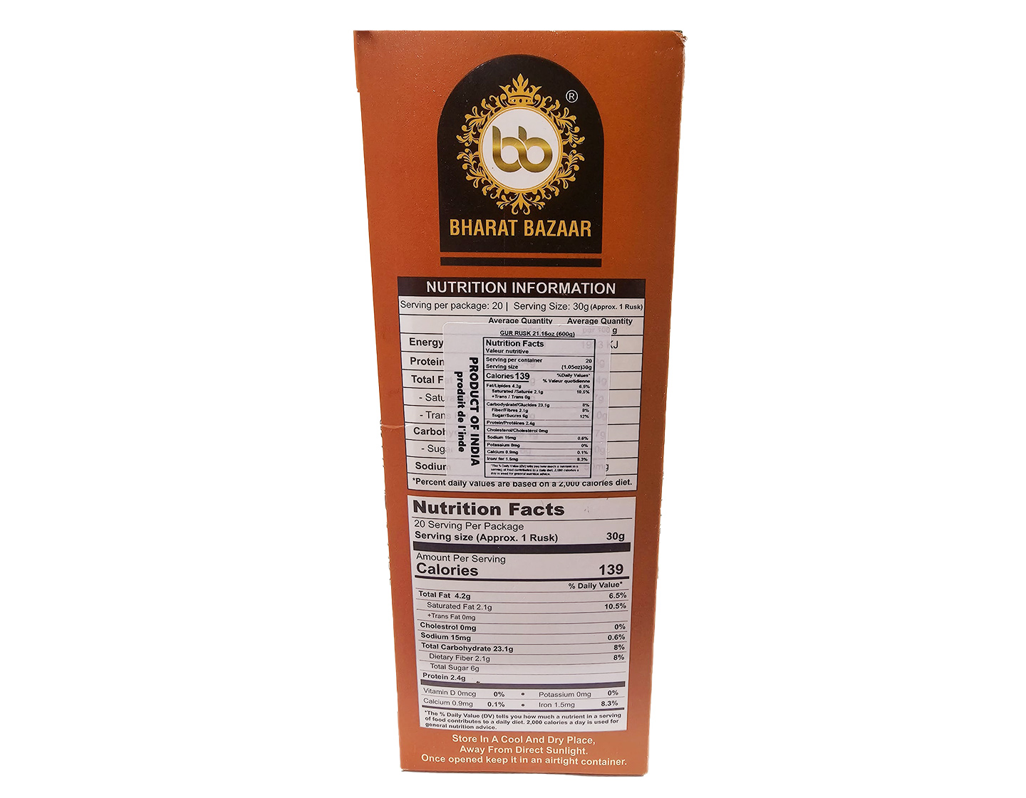 Bharat Bazaar Gur Rusk (600g) is a crispy, golden-brown snack made with jaggery (gur), offering a rich, caramelized sweetness. Perfect with tea or coffee, it’s a delicious and wholesome treat.