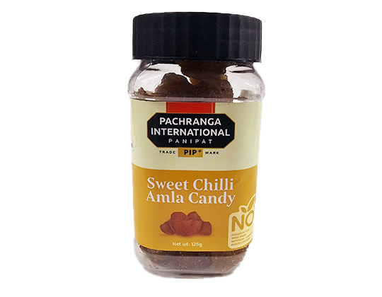 Pancharanga International Sweet Chilli Amla Candy offers a unique blend of tangy, sweet, and spicy flavors. Made from nutritious Indian gooseberries, it's a tasty and healthy treat rich in vitamin C.