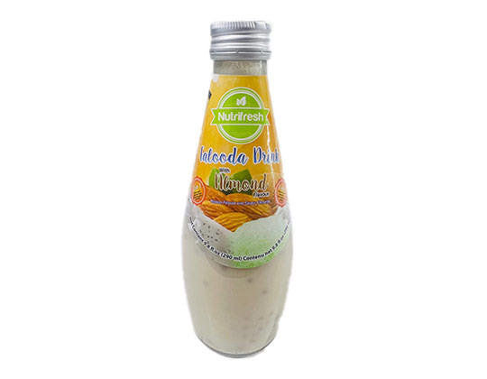 Nutrifresh Falooda Drink with Almond Flavor is a rich, creamy beverage infused with the nutty goodness of almonds, silky vermicelli, basil seeds, and a delightful blend of milk, offering a refreshing taste.