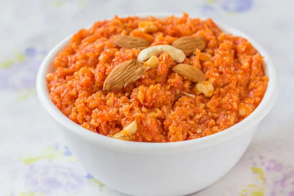 This indulgent pudding is made by slow cooking carrots in with condensed milk, ghee, almonds and pistachios. The flavor is enhanced with a hint of cardamom and saffron.