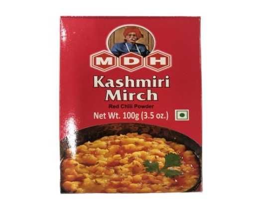 MDH Kashmiri Mirch 100g: Add a vibrant red color and mild heat to your dishes with MDH Kashmiri Mirch. Made from dried Kashmiri chili peppers, this spice powder is known for its rich color and subtle spiciness.