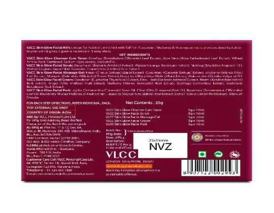 Skin Glow Facial Kit is a comprehensive facial care that helps you get radiance with perfection - VLCC Skin Glow facial Kit's unique formulation is enriched with Saffron, Cucumber, Mulberry & Nutmeg extracts providing deep hydration to your skin & gives it glow & radiance in 5 easy steps.