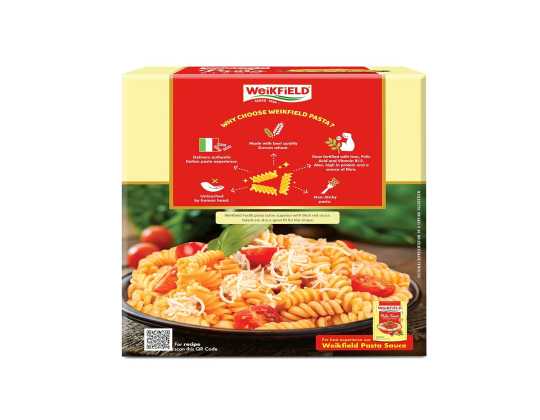 Weikfield Fusilli Pasta is a premium, durum wheat pasta with a spiral shape that holds sauces well. It's perfect for creating flavorful and wholesome Italian dishes, offering a firm texture and rich taste, ideal for a variety of recipes.
