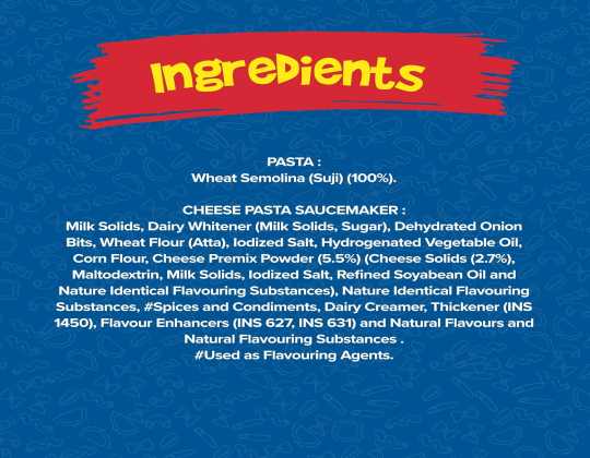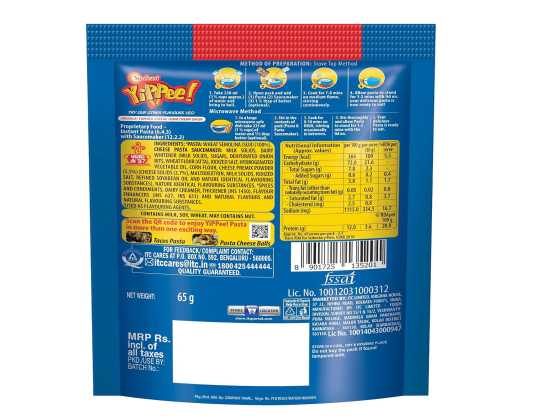 Sunfeast YiPPee! Instant Pasta Treat Cheese is a delightful and tasty dish loved by all ages. With a cheesy, creamy, and mouthwatering taste, it is a delectable and yummy snack. The pasta is made with the goodness of Suji (Semolina) / Rava.