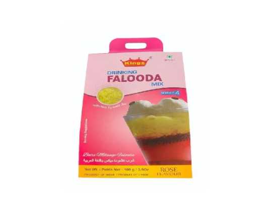 King's Falooda Mix in Rose Flavor is a delightful blend of rose essence, vermicelli, and basil seeds, perfect for creating a refreshing, traditional Indian dessert. Just add milk, ice cream, and garnish with nuts for a rich, aromatic treat.