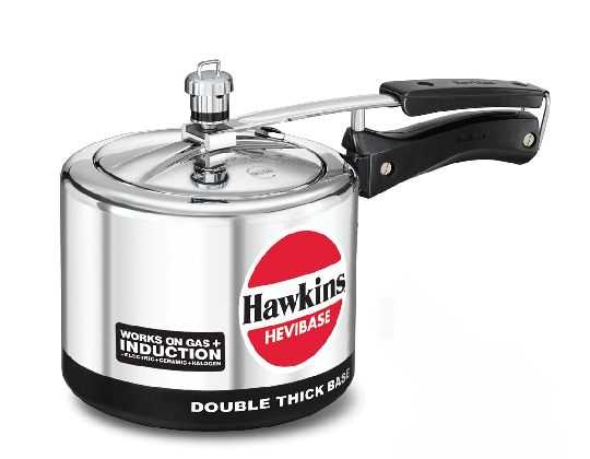 The Hawkins Hevibase Pressure Cooker of commercially pure virgin aluminium is Induction Compatible with an external bottom plate of AISI 430 grade magnetic stainless steel attached to the double thick base.
