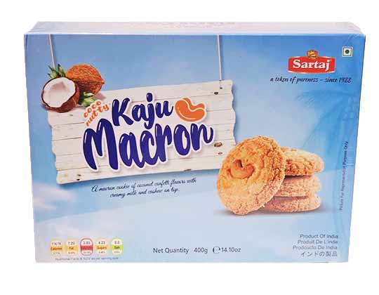 If you're craving something unique, try Sartaj Kaju Macaron Cookies. These exquisite treats blend the rich nuttiness of cashews with the sweet, tropical taste of coconut for a luxurious and refreshing flavor experience.