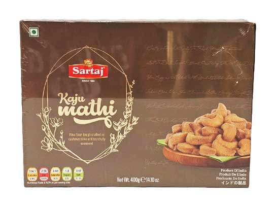 Kaju Mathi is a delightful snack made with flavorful spices. These crunchy, crispy triangle-shaped treats are fried to perfection, offering a delicious taste that appeals to both children and adults. Enjoy this popular Indian namkeen anytime!