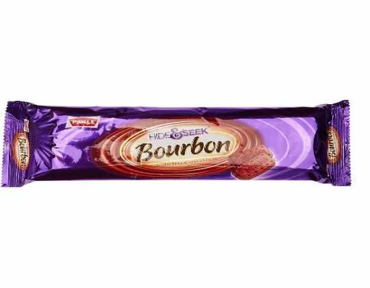 Parle - Hide & Seek Bourbon 150g: Classic chocolate sandwich cookies with a rich chocolate flavor and a creamy vanilla filling. Indulge in the perfect blend of crunchy biscuits and smooth cream, creating a delightful treat for any chocolate lover.