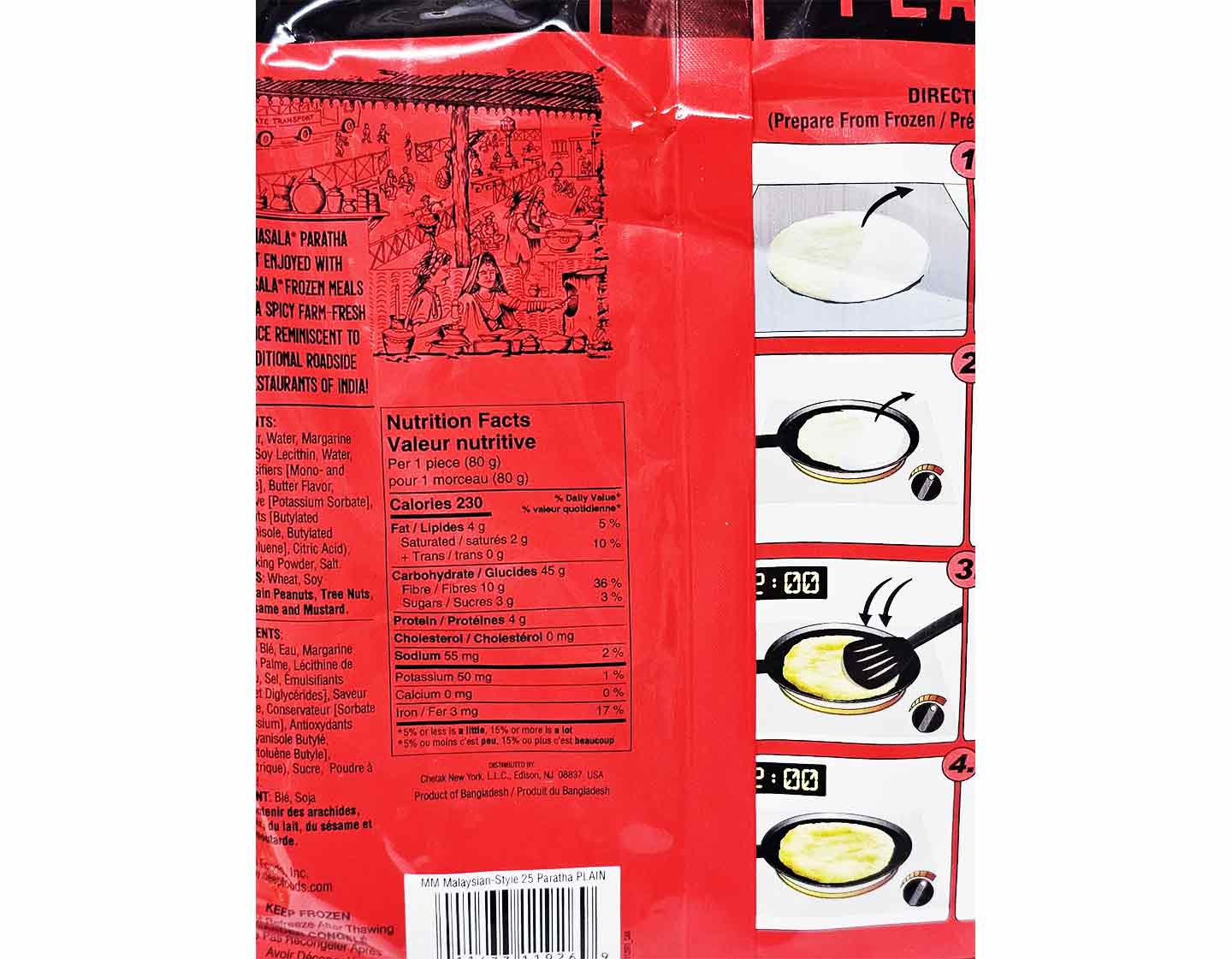 Plain parathas are made by kneading whole wheat flour with salt, oil, and water. The dough is rolled out into layers and cooked on a hot griddle or tawa with ghee or oil until light golden brown spots form on both sides.