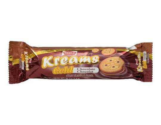 Parle - Kreams Chocolate 66.7g: Rich and creamy chocolate-filled sandwich cookies that offer a delightful combination of smooth chocolate cream and crispy biscuits. Indulge in the irresistible taste of these chocolatey treats.