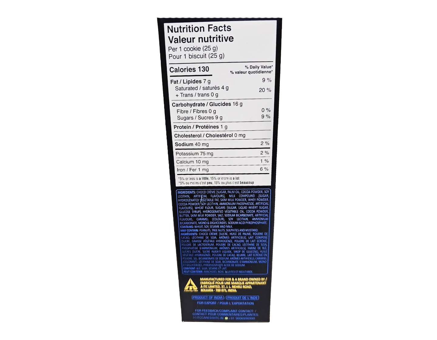 A large, delectable cookie with a crunchy almond and cashew crust, filled with velvety chocolate and hazelnut crème. Indulge in the perfect blend of a crispy exterior and a rich, smooth choco crème center for a truly irresistible treat.