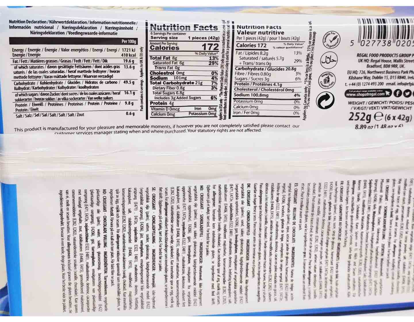 Regal chocolate-filled croissants are crafted with wholesome ingredients and baked to perfection for a delightful snack. Each pack contains six delicious croissants, making them the perfect treat for sharing memorable moments with loved ones.
