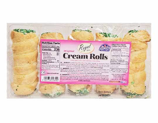 Regal cream rolls are exquisite puff pastry treats filled with rich hazelnut cream, originating from Southeast Asia. Perfect for satisfying mid-day cravings, they make an ideal snack for lunchboxes, busy workdays, or delightful teatime moments.