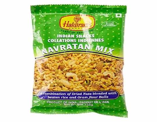 Haldiram's Navratan Mix 150g offers a delightful and crunchy snack mix. This blend combines a variety of savory elements such as crispy noodles, roasted peanuts, lentil flour sticks, dried fruits, and a mix of spices.