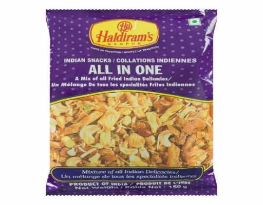 Haldirams All In One 150g offers a popular and flavorful snack mix. This combination of crunchy lentil flour noodles, peanuts, chickpea flour sticks, and other savory elements creates a delicious and satisfying snacking experience.