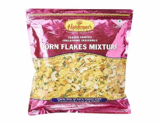 Haldirams Cornflakes Mixture 350g offers a delicious and crunchy snack mix. This blend combines crispy cornflakes, roasted peanuts, lentil noodles, and a variety of savory elements to create a flavorful snacking experience.