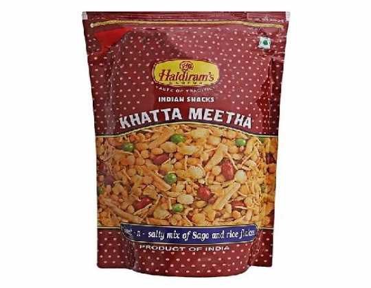 Haldirams khatta meetha mixture is Delicious sweet and sour mix of fried green peas, boondi, lemon sev and classic namkeen is an extraordinary treat to your senses.