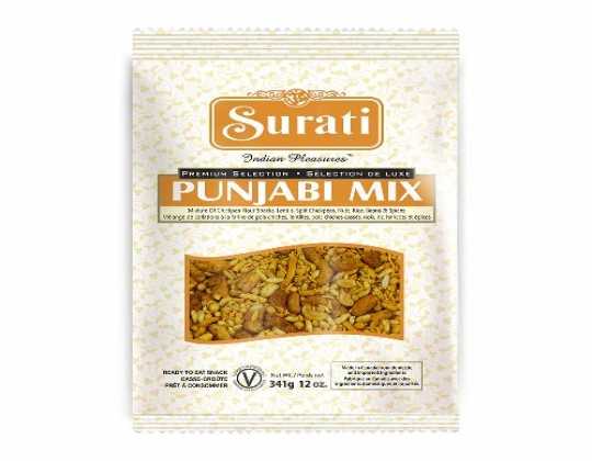 Surati Punjabi Mix is a savory snack blend that combines the flavors of various crunchy ingredients. With a mix of fried gram flour sticks, roasted peanuts, lentil chips, and spices, it offers a burst of tangy and spicy flavors.
