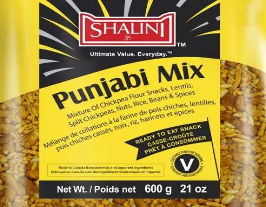 Mixture of Chickpea Flour Snacks, Lentils, Split Chickpeas, Nuts, Rice, Beans & Spices.