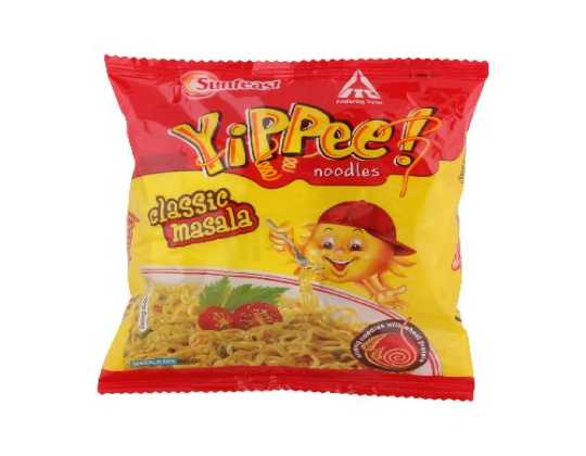 Sunfeast Yippee Noodles - Classic Masala offers a delightful blend of rich Indian spices with long, non-sticky noodles. Ready in minutes, it delivers a burst of savory flavors, making it a favorite for a quick, satisfying meal.