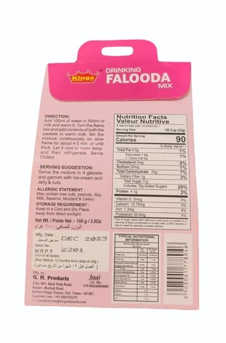 King's Falooda Mix in Rose Flavor is a delightful blend of rose essence, vermicelli, and basil seeds, perfect for creating a refreshing, traditional Indian dessert. Just add milk, ice cream, and garnish with nuts for a rich, aromatic treat.