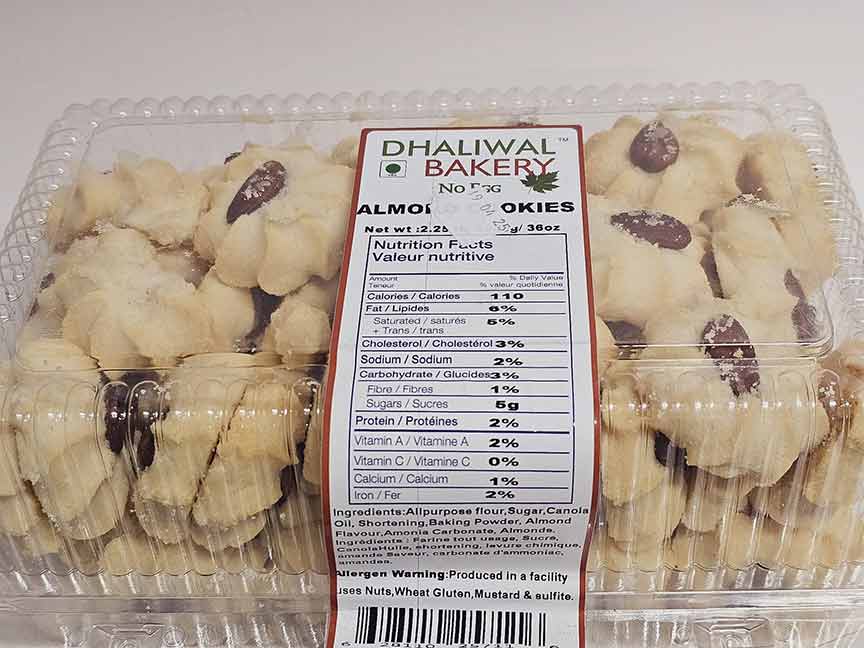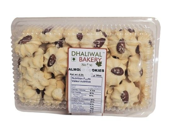 Dhaliwal Bakery's almond cookies are a delightful treat, crafted without eggs, making them suitable for vegetarians. These cookies boast a rich, nutty flavor, with a crisp texture that melts in your mouth, offering a perfect balance of sweetness and almond goodness.