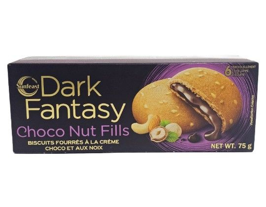 Sunfeast Dark Fantasy Choco Nut Fills are crunchy cookies with a rich chocolate and nut-filled center. Each bite offers a delightful combination of smooth chocolate and crunchy nuts, creating an indulgent and satisfying snack experience.